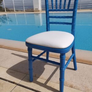 Chiavari wooden chair blue with white leather cushion pad